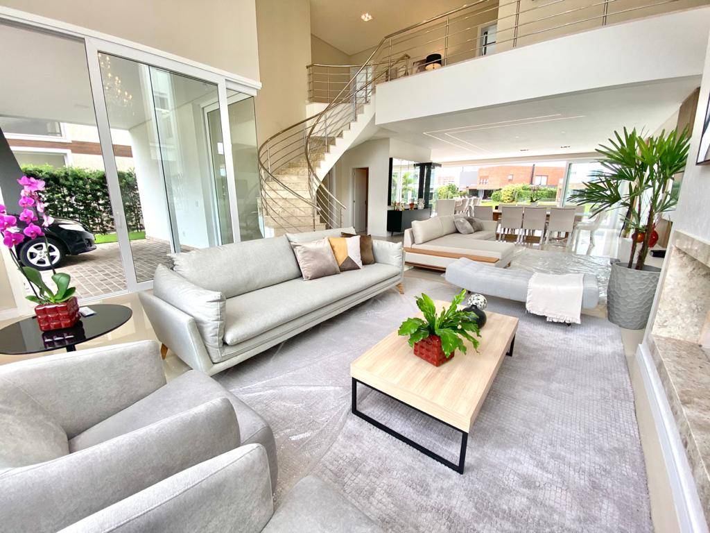 Sobrado a venda no Condomínio Enseada, na beira do Lago, finamente mobiliado e decorado. Composto de 05 Suítes, sendo 01 máster e 1 no pavimento térreo, 1 dependência de empregada, lavabo, living integrado em 4 ambientes, espaço gourmet com churrasqueira, mesa de sinuca, cozinha espaçosa e totalmente equipada, piscina de concreto em borda infinita e com deck molhado, casa com mais de 380m² totalmente nova, nunca habitada, móveis de alto luxo. Proprietário estuda propostas, com prazo direto em até e 36x para pagar, recebe seu imóvel como parte de pagamento. Entre em contato agora mesmo para receber mais informações sobre Casa em condomínio com 5 dormitórios em Xangai-Lá RS